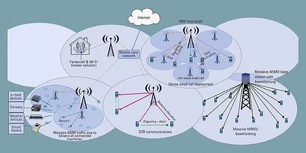 5G并不是简单提升速度就好,它还得包含许多特性:包括毫米波、MIMO(Multiple-Input Multiple-Output)、波束赋形、D2D等。所谓的毫米波,也就是前述所提到的高频,然而为什么我们过去不使用速度更快的高频呢?是因为高频过去多半运用于军事上,另外则是有成本的考虑。 成本的考虑又是什么?假使电磁波的频率越高,波长就越长,连带地它的绕射能力也就越差,就如同卫星通讯及GPS导航一样,对于传输方向有一定要求,因此,电信系统商就得兴建更多的基地站来传递讯号,成本也就跟着水涨船高。举例来说,原本一个4G的基地台就能覆盖的范围,5G基地台就得装设6-8个基地台才够用。 为了解决这项问题,多数电信商会使用微型基地台(Microcell),来取代过往的大基地台,成本也能跟着下降,这时也会引发一些疑虑,如果架设了这么多的基地台,会不会造成更多的辐射污染呢? 这可以用一种简单的模拟来说明:在一间房间里,用一个大功率的暖炉好,还是数个小功率的暖炉好呢?答案当然是后者,因为后者的覆盖良好,热能不会集中于某区域散播,而是相对分散,并且速度快,功率影响也更小。 而MIMO又是什么呢?答案是装设“更多的天线”。为什么智能手机内能容纳更多支天线呢?是因为当频率越高时,波长短,天线也就跟着缩短。过去的大哥大多有一只长长的天线,而今日却已经不常见了,并不是因为它们不再被需要,而是缩小嵌入整只手机里头去了。 而5G时代使用的毫米波,天线也能再度缩小。因此,除了可以将更多的天线塞入手机外,微型基地台内也能放入更多的天线,接收与发送讯号的窗口越多,处理速度也能大幅增加,达到所谓的“多进多出”。 控制电磁波的传输方向 再来是具备高技术门坎的波束赋形。电磁波的传输,一般是用四散、广播的方式传递讯号,然而我们通常只需要将讯号朝着某方向传递即可,多数的电磁波能量都被大幅浪费。 而波束赋形则是可以控制射频讯号,使得基地台站上的电磁波,能对准它提供服务的对象(智能手机),并随之改变方向。透过此项精准传递讯号的服务,可以大大提升基地站的服务数量。